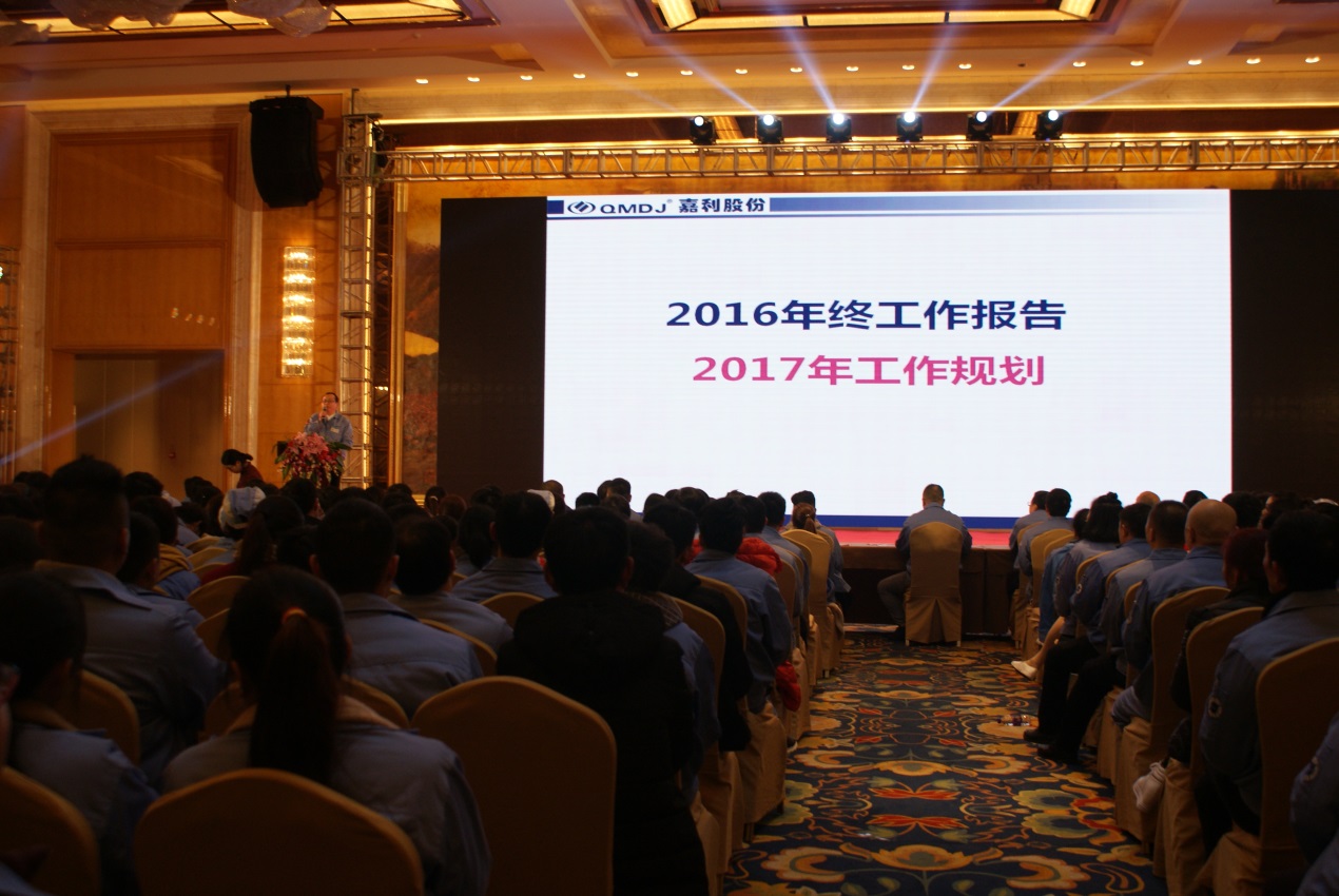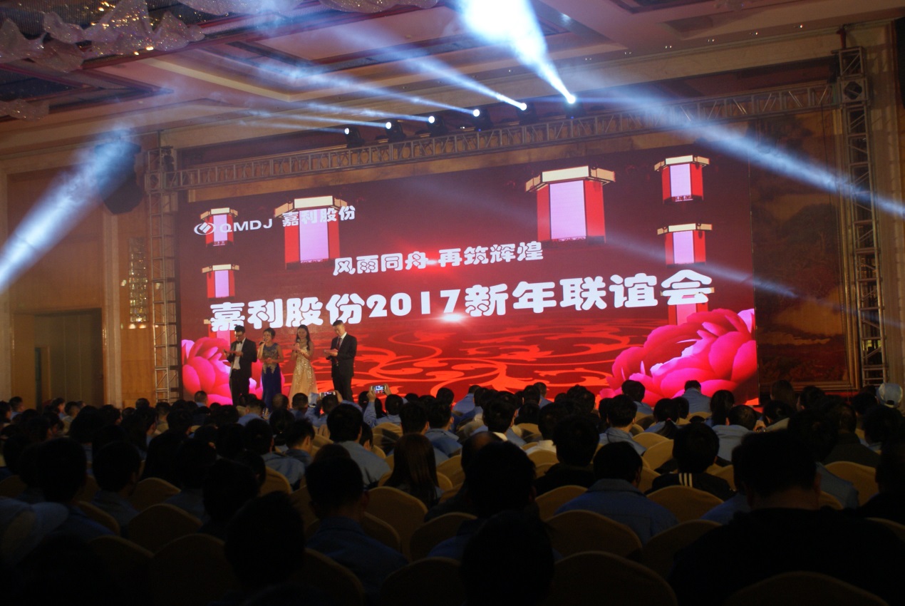 黃玉琦董事長(zhǎng)致辭,向全體員工辛勤的勞動(dòng)表示感謝,提出2017年公司發(fā)展總體目標(biāo),勉勵(lì)全體同仁再接再厲,力爭(zhēng)2017年再創(chuàng)嘉利新的輝煌!提前祝福全體員工及其親人春節(jié)快樂、家庭幸福、工作順利、雞年吉祥!