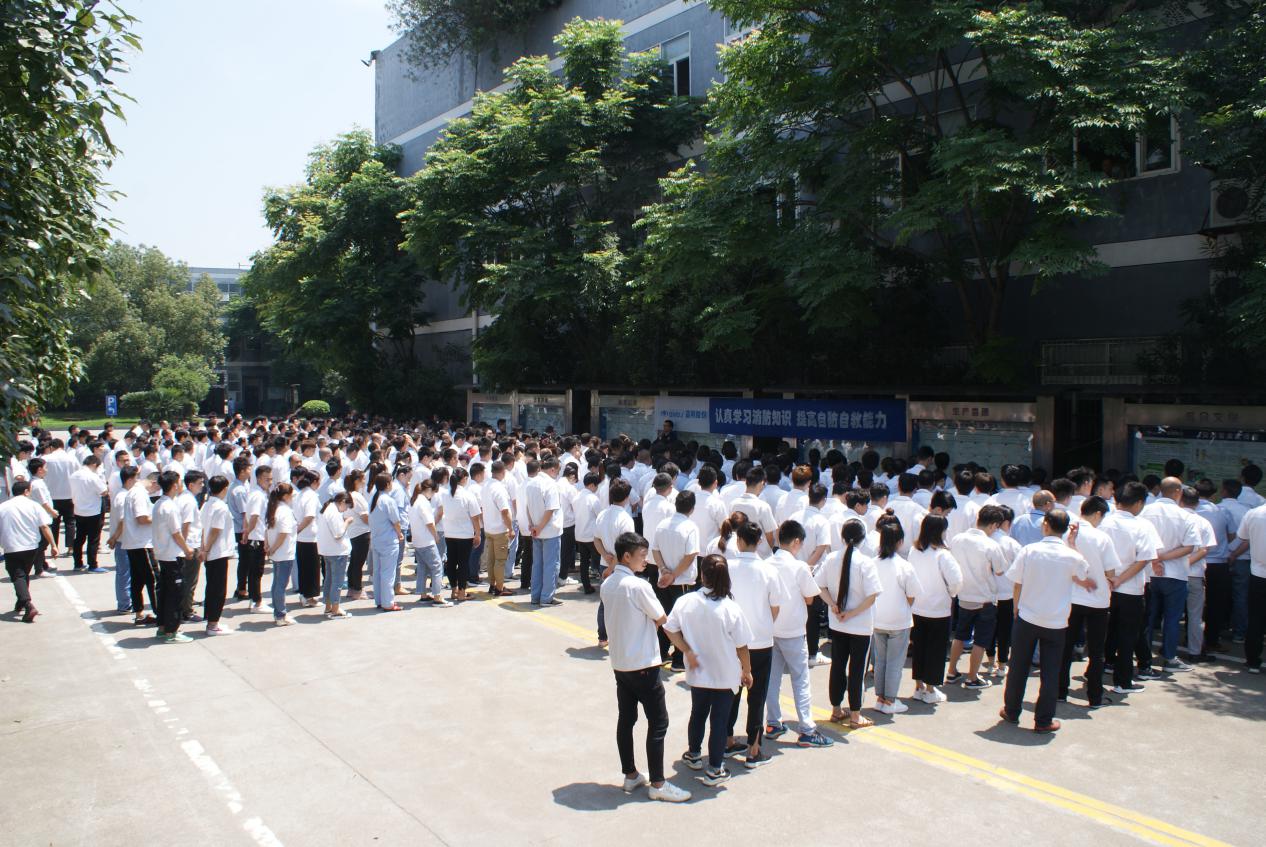 原來(lái),公司正在進(jìn)行消防緊急疏散演習(xí),演習(xí)過(guò)程僅五分鐘,五分鐘后,公司全體員工安全撤離到公司廣場(chǎng),
